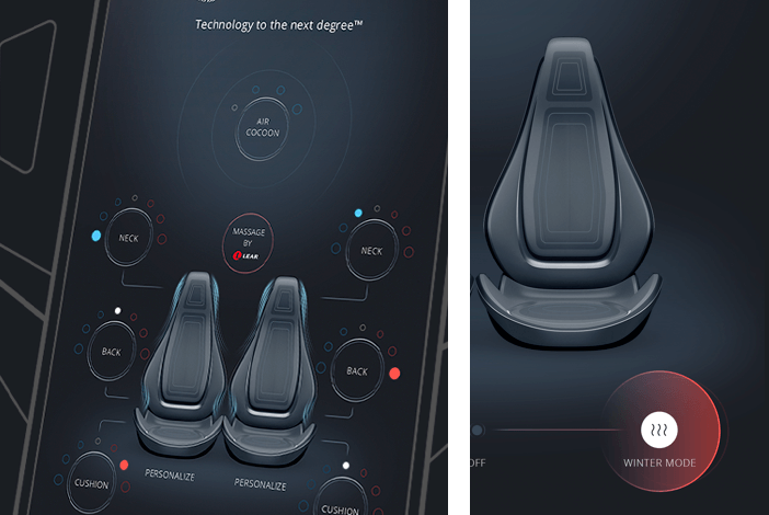 To put an emphasis on the cutting-edge features of Gentherm's system such as self-regulating sensing technology or a neck conditioning we delivered a futuristic UI design that communicates with car occupants visually and provides them with advanced customization capabilities.